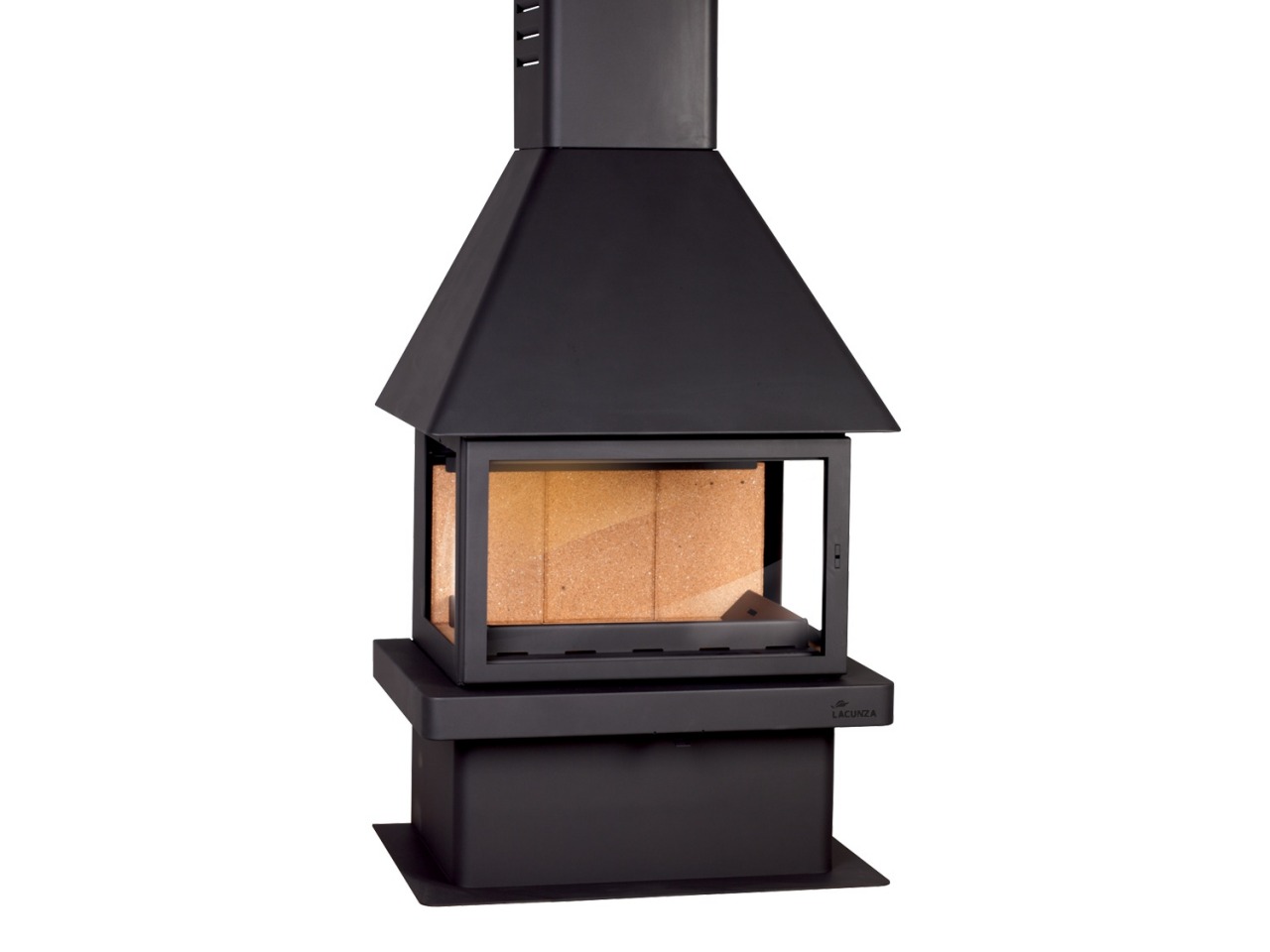 Chimenea central con interior de ladrillo refractario y sistema cristal limpio.