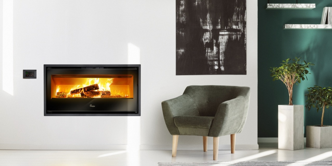Insertable de acero con interior de vermiculita. Deflector de acero inoxidable y parrilla de fundición. Turbinas regulables con mando a distancia. Con marco de 2,5 cm. Entrada de aire del exterior. Control independiente de cada canalización de aire caliente desde la parte frontal.