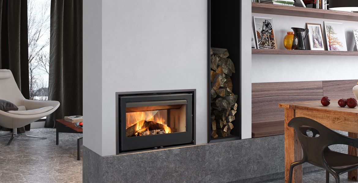 Insertable con puerta frontal reversible. Cámara de combustión de acero.