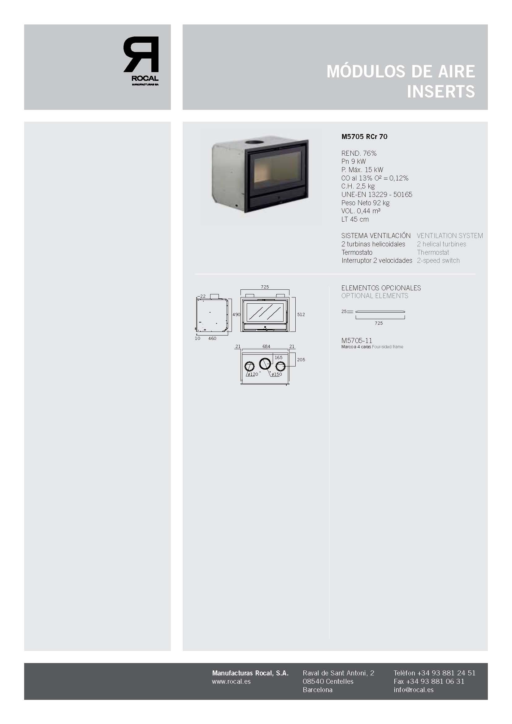 Insertable con puerta frontal reversible. Cámara de combustión de acero.