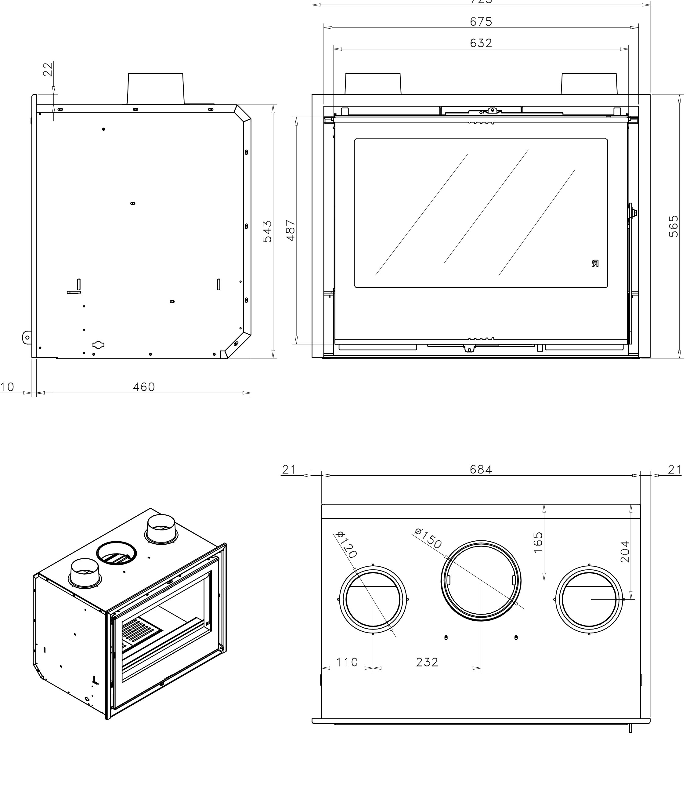Insertable con puerta frontal reversible. Cámara de combustión de acero.