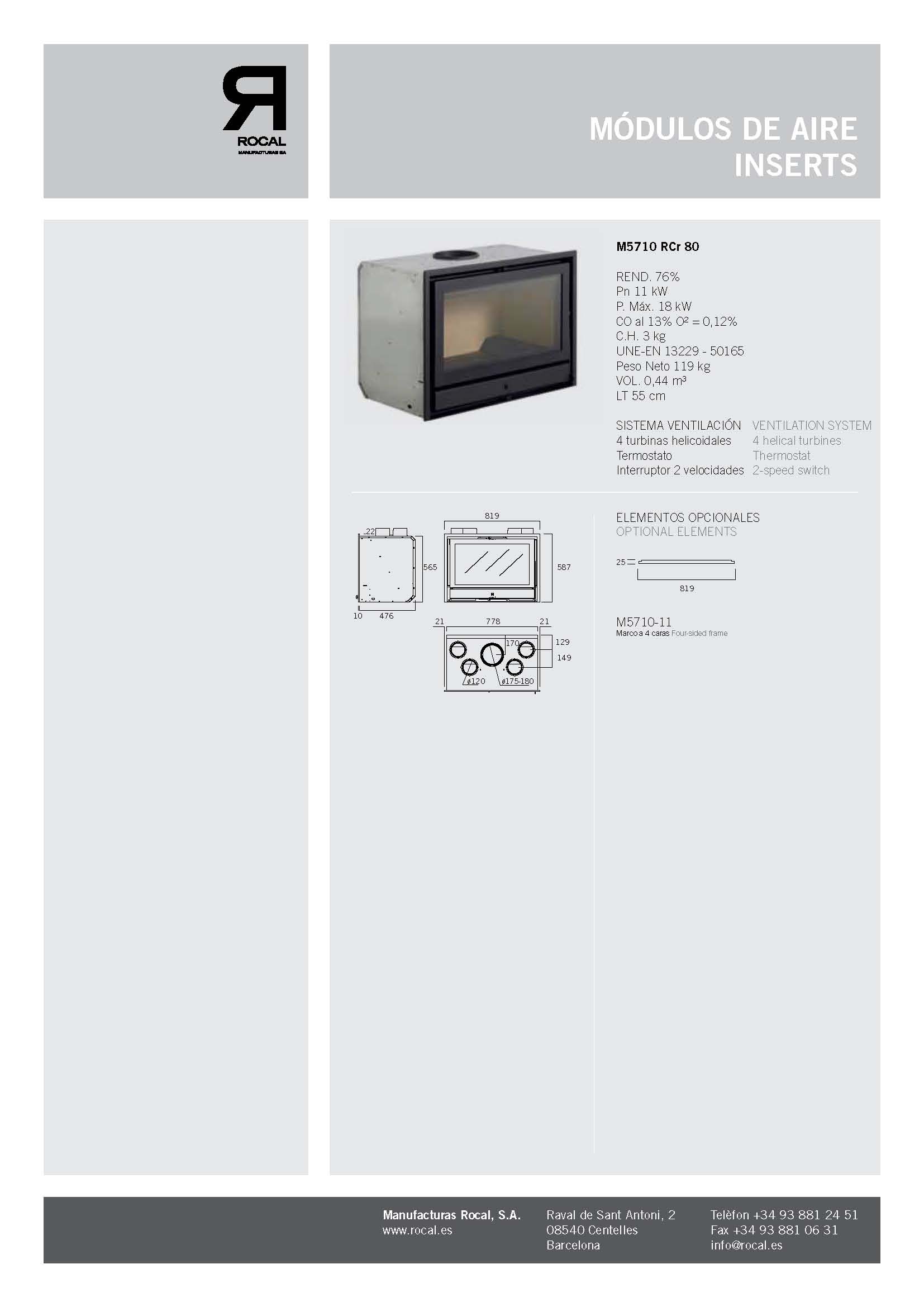 Insertable con puerta frontal reversible. Cámara de combustión de acero.