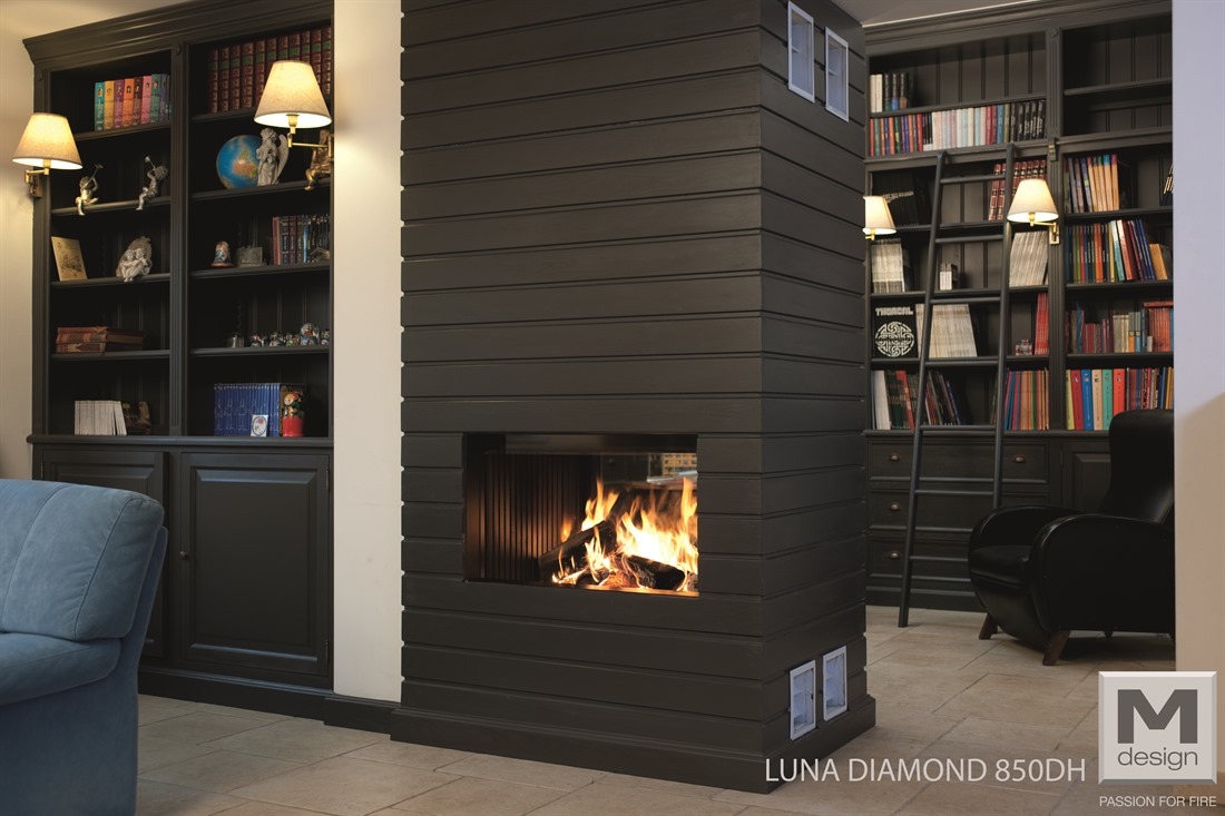 Los hogares Luna Diamond con puerta guillotina ofrecen una combustión tan eficaz que es capaz de sacar un mayor rendimiento a la leña.salvachispas metálico en guillotina