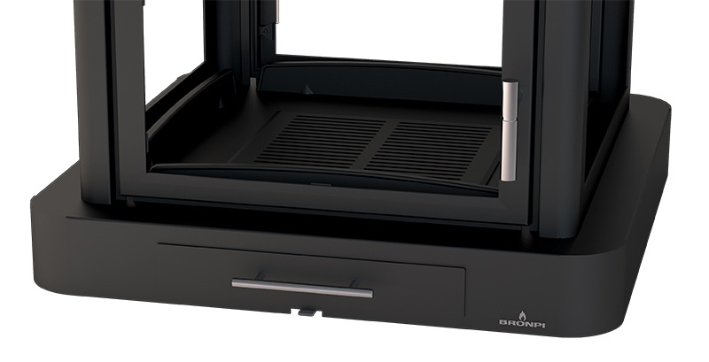 Llar de foc central elaborada en acer, amb interior en acer. Doble porta i 4 vidres. Sense peu.