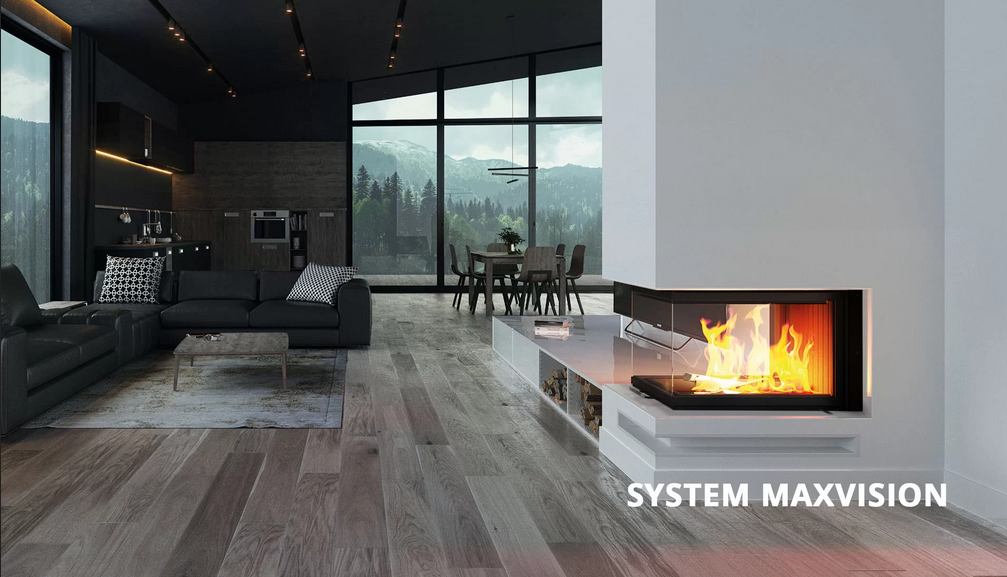 Llar de foc 3 cares amb apertura de porta de guillotina.