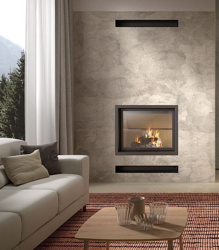 Fogar amb porta de guillotina i basculant. Interior de la llar revestida de refractaris i deflector de vermiculita.