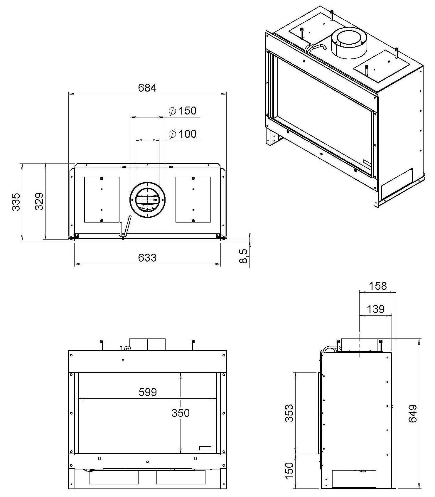 Disposa d'encès remot, cremador "Emberbed *Burner" i decoració amb efecte llenyes o pedres.