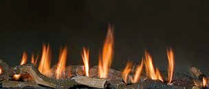 En el cremador Emberbed Burner® les flames es distribueixen al llarg de tot el cremador en una elegant forma corbada. Disponible amb set de troncs o pedres blanques.